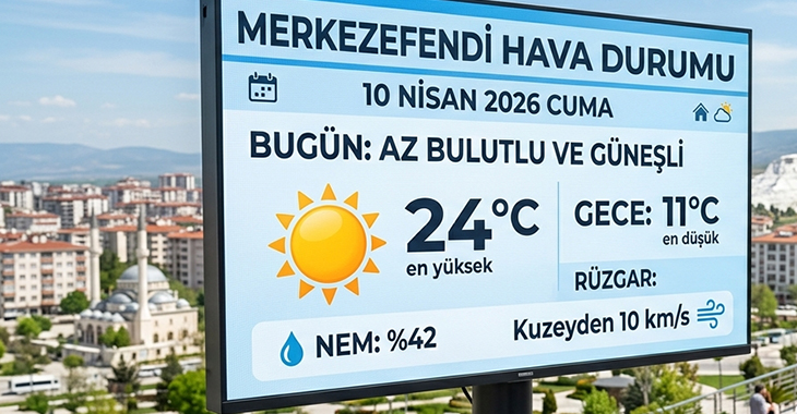 Read MoreMerkezefendi 10 Nisan 2026 hava durumu belli oldu! İlçede bugün güneşli ve az bulutlu bir gökyüzü hakim. En yüksek sıcaklık 24°C olarak ölçülürken, güncel meteoroloji verileri haberimizde.